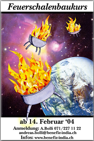 Feuerschalen KursFeuerschalen lassen sich sehr vielseitig verwenden. Sie sind eine Art mobile Feuerstelle, die man fast überall draussen hinstellen und darin ein Feuer zum sich wärmen oder zum Bräteln entzünden kann. Im Februar und März 2004 werden Andres Rohner und Peter Rohner einen Feuerschalen - baukurs veranstalten. Der Erlös des Kurses geht an den Verein Benefiz India. Ziel des Kurses ist es, dass sich die Teilnehmer eine Feuerschale bauen und dabei einen Einblick in verschiedene Techniken der Metallbearbeitung kriegen. Zur Gestaltung der Feuerschalen können die Kursbesucher selbst Vorschläge mitbringen, es stehen jedoch bereits auch ausgearbeitete und bewährte Modelle zur Auswahl. Für den Kurs stellt uns Tobias Lenggenhager seine Schlosserei in St.Gallen Winkeln zur Verfügung, pro Kurstag können dort jeweils maximal vier Teilnehmer tätig sein. Der Kurs ist jeweils an Samstagen an folgenden Daten: Sa. 14.02.04, 21.02.04, 28.02.04, 06.03.04, 13.03.04 und am 20.03.04. Die Kosten für den Kurs betragen 150 Fr. pro Person, darin inbegriffen sind das Material, Kaffee und Tee und ein Imbiss. Wenn du Feuer und Flamme bist für einen solchen Kurs kannst du dich bei Andreas Bolli telefonisch über die Nummer 071/277'11'22 oder per email bei andreas.bolli@benefiz-india.ch (bitte gewünschte Daten angeben).